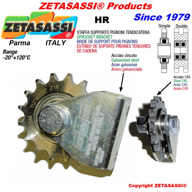 | -- | ZEHR112D | Abrazadera tensor de cadena en acero cincado tipo HR1 ZETASASSI® equipado de piñon tensor con rodamientos para la cadena doble 08B2 1\2"x5\16" 16 dientes de acero C45 (Made in Italy) | -- | 32,06 € | 0 | Consultar |