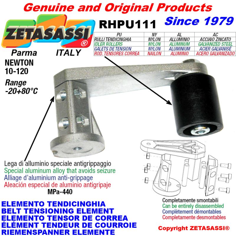 ZERHPU1113035NY Elemento tensor de correa rotativo RHPU111 ZETASASSI® equipado de rodillo tensor con rodamientos Ø30 x L35 m\m en nailon Newton 10:120 (Made in Italy) -- 26,32 € 0 Consultar