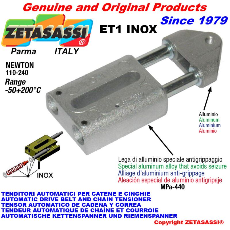 | -- | ZEET1BASEINOXKU | Tensor ET1 BASE INOX KU ZETASASSI® Con casquillos PTFE Cuerpo de aleación de aluminio, piezas de apriete y muelles de acero inoxidable, sin cabeza - Newton 110:240 (Made in Italy) | -- | 48,58 € | 0 | Consultar |