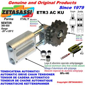 | -- | ZEETR3AC1SKUTE | Tensor de cadena lineal ZETASASSI® tipo ETR3 con casquillos deslizantes PTFE equipado de piñon tensor con rodamiento para la cadena simple 16B1 1"x17,02 m\m 12 dientes de acero endurecido C45 Newton 300:650 (Made in Italy) | -- | 77,42 € | 0 | Consultar |