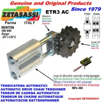 | -- | ZEETR3AC38D | Tensor de cadena lineal ZETASASSI® tipo ETR3 equipado de piñon tensor con rodamientos para la cadena doble 06B2 3\8"x7\32" 21 dientes de acero C45 Newton 300:650 (Made in Italy) | -- | 52,22 € | 0 | Consultar |